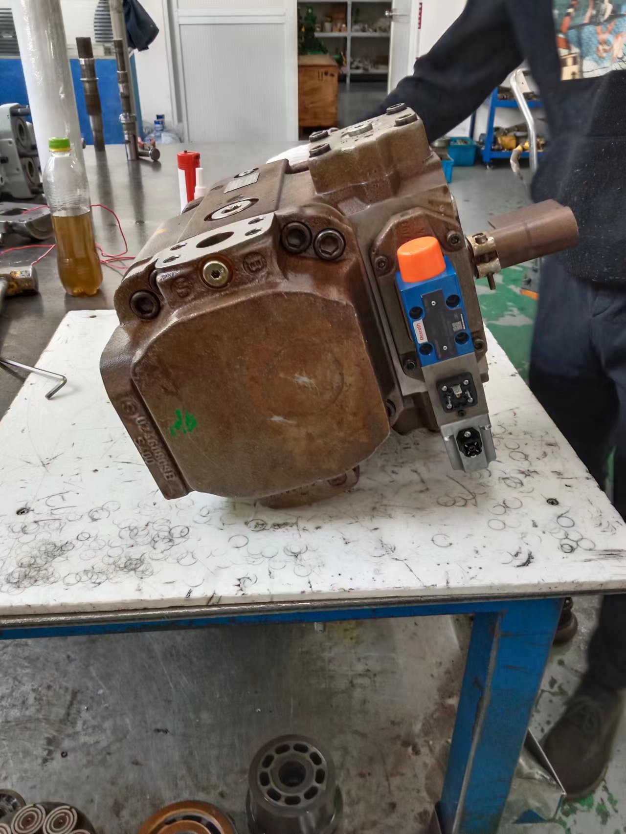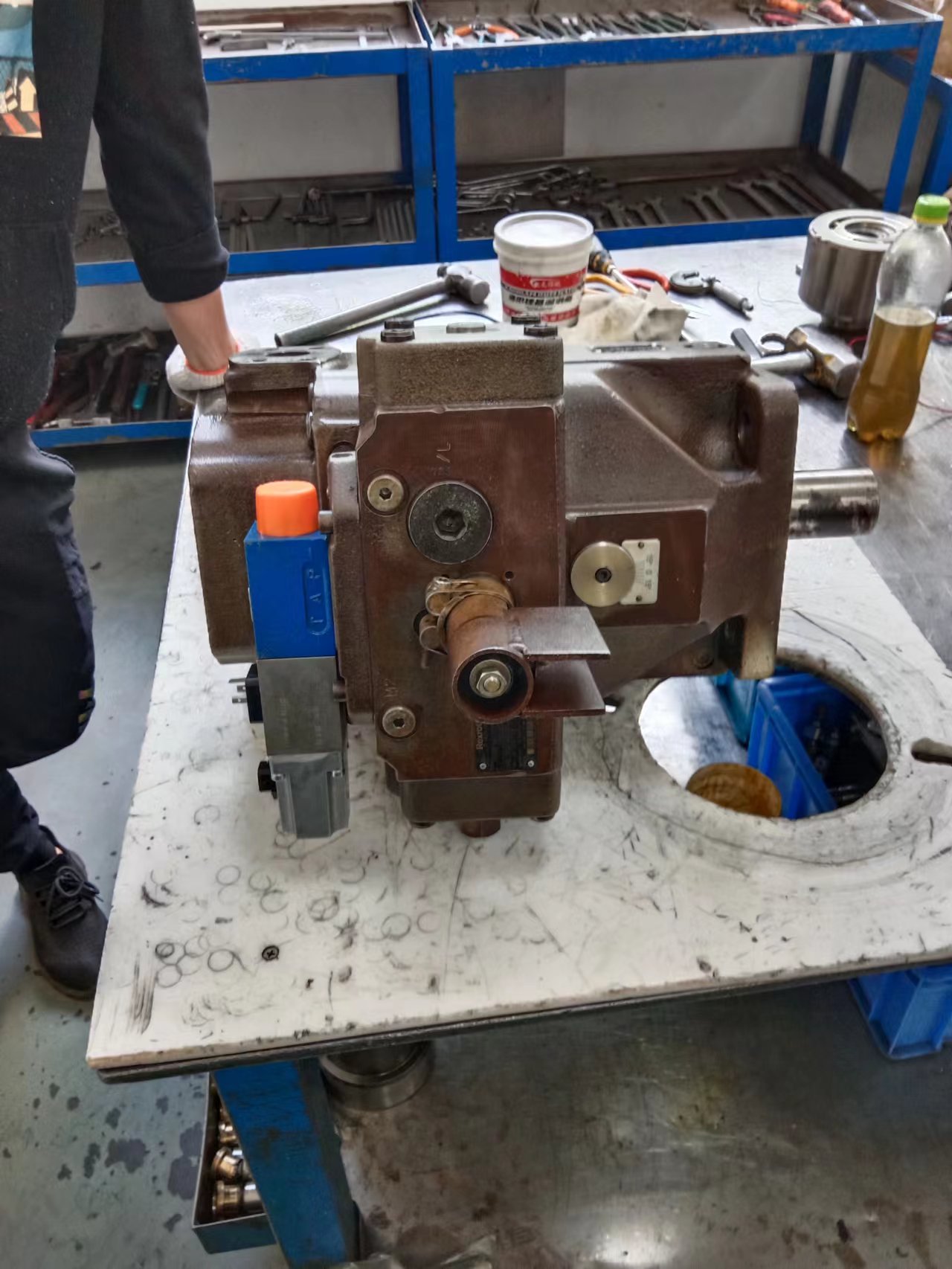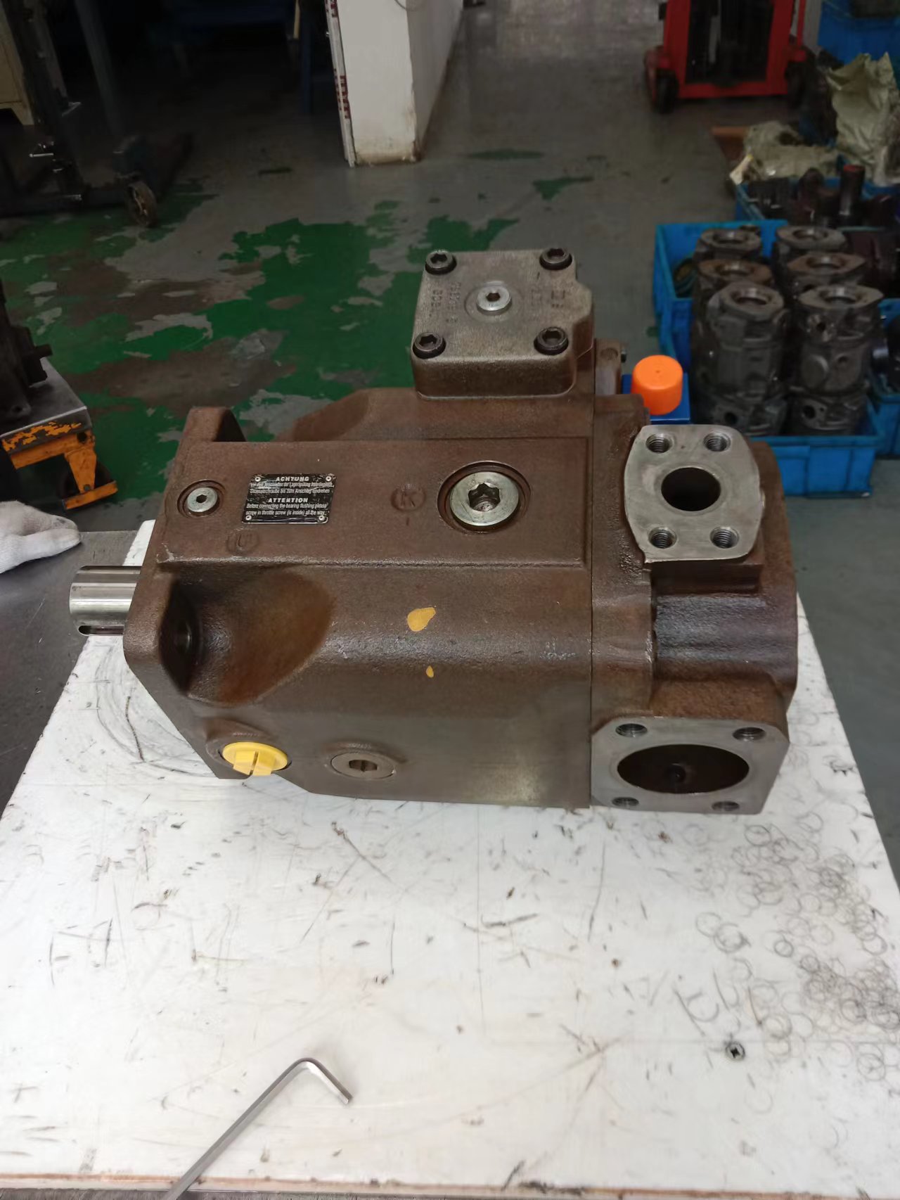 1、斜盤式是斜盤相對回轉的缸體有一傾斜角度,而引起柱塞在泵缸中往復運動。傳動軸、軸線和缸體軸線是一致的。這種機構較簡單,轉速較高,但工作條件要求高,柱塞端部與斜盤的接觸部往往是簿弱環(huán)節(jié)。