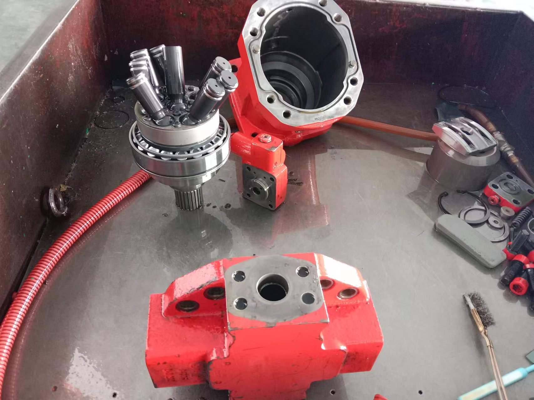 采用先進液壓維修工藝,具有專業(yè)加工能力及檢測技術(shù)手段。擁有三臺大功率試驗臺,兩臺閉式系統(tǒng)測試臺,兩臺液壓閥試驗臺,除解決配油盤,缸體,柱塞這類問題之外,尤其是解決液壓泵,液壓馬達,及控制閥及其伺服變量等這類核心技術(shù)問題,尤有優(yōu)勢。從材料選擇及熱處理(具有材料分析,檢驗設備)再到加工制造至裝配。產(chǎn)品的耐用性能接近進口原裝水平,因此可使用戶在無法購得配件時,恢復液壓件和系統(tǒng)性能。歡迎各界朋友前來咨詢。